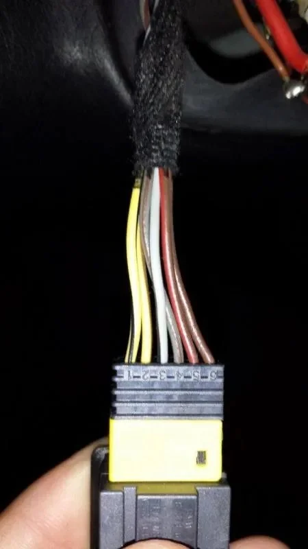 8. Unclip the steering wheel connections from the wiring harness by pressing the tab and pulling free.