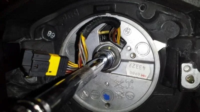15. Carefully remove the airbag, disconnect it at the junction inside the steering wheel, and place it face up without putting anything on top.