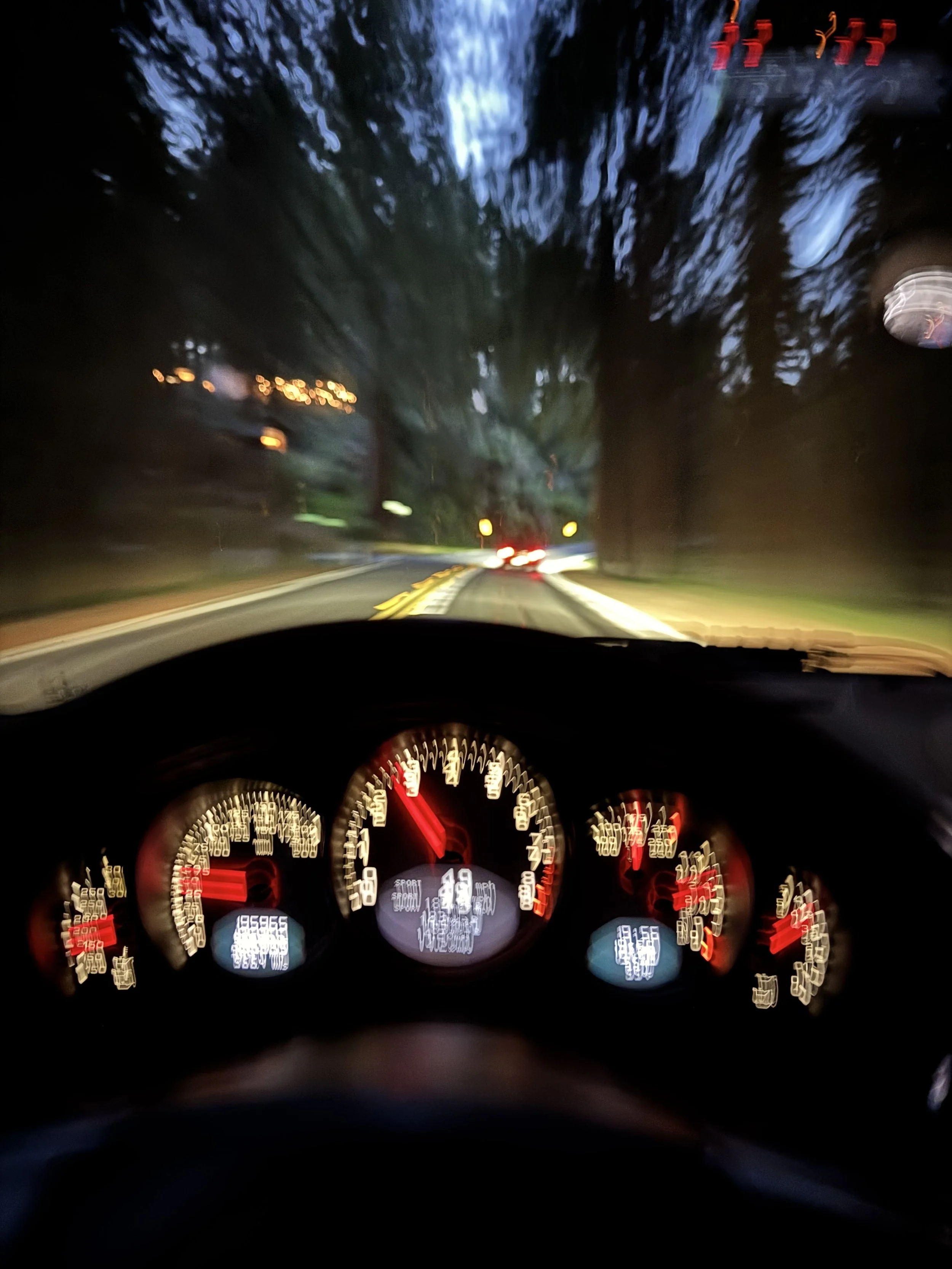 The first drive after was nothing special. Sunset run. Maybe forty-five minutes of road. The car did what it always does — the steering loaded up the way it always loads up, second gear pulled the way it always pulls, the brakes squealed the way they always squeal. None of it was new. That was the point. I’d been missing the part where it didn’t need to be new. Where it could just be a Tuesday evening and a familiar road and a car I know better than some people in my life.